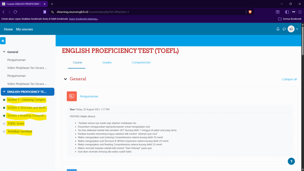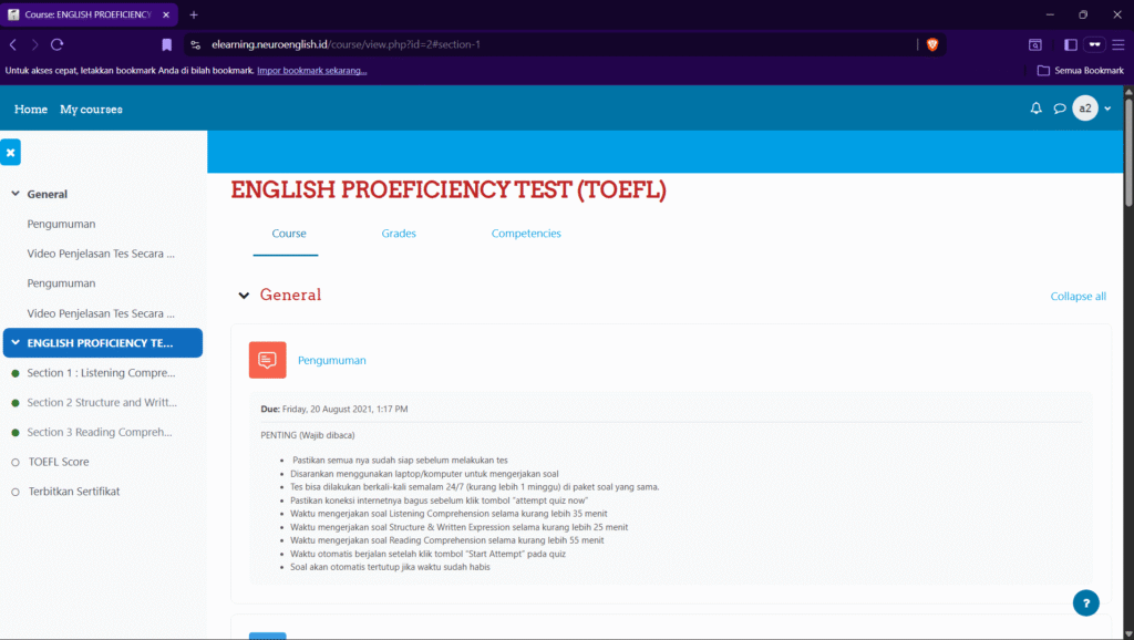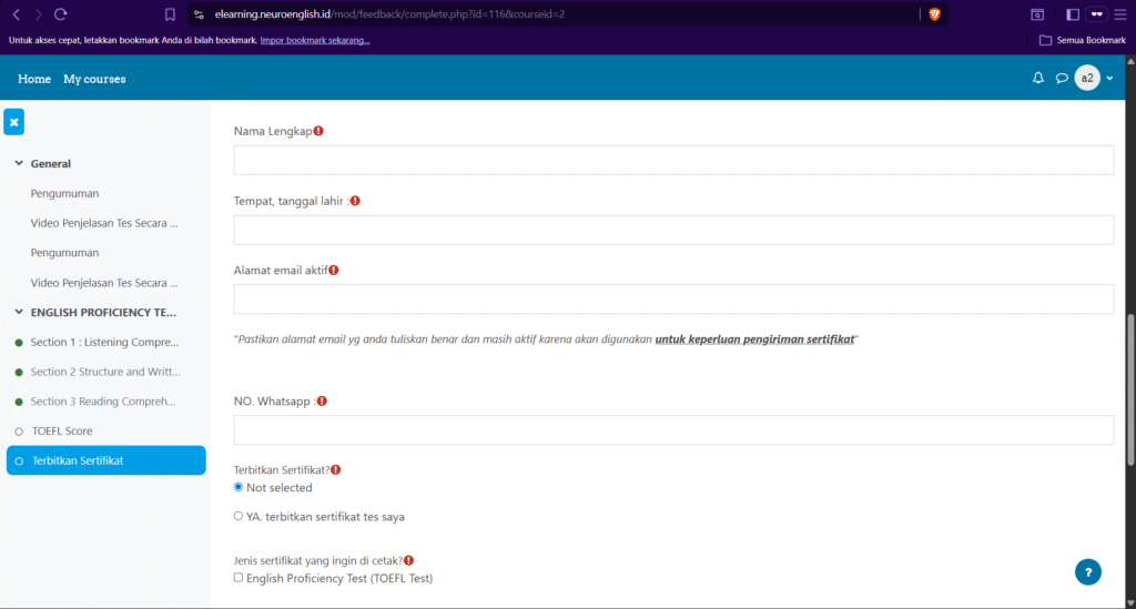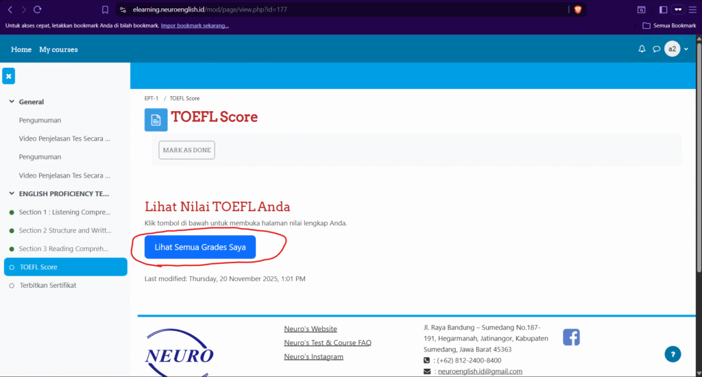 Cara Akses Halaman English Proficiency Test (TOEFL) – NEURO