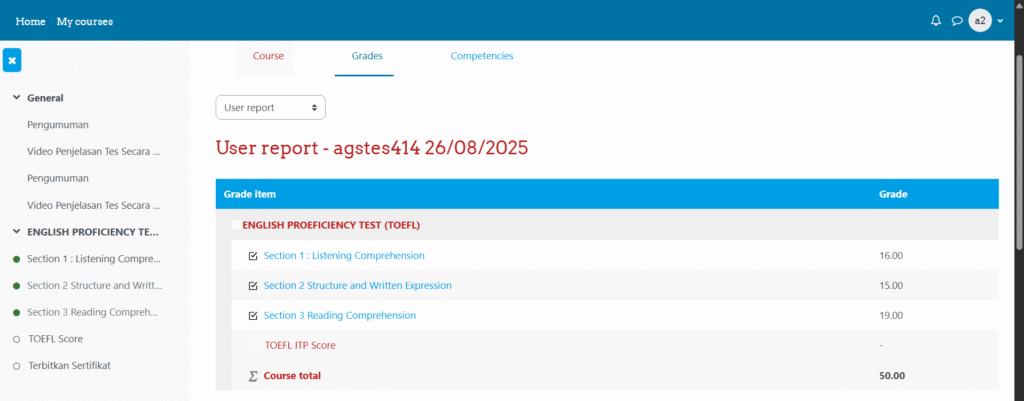 4. Pada laman my course, pilih program yang Anda ikuti. Pada contoh ini misalnya English Proficiency Test ( TOEFL).