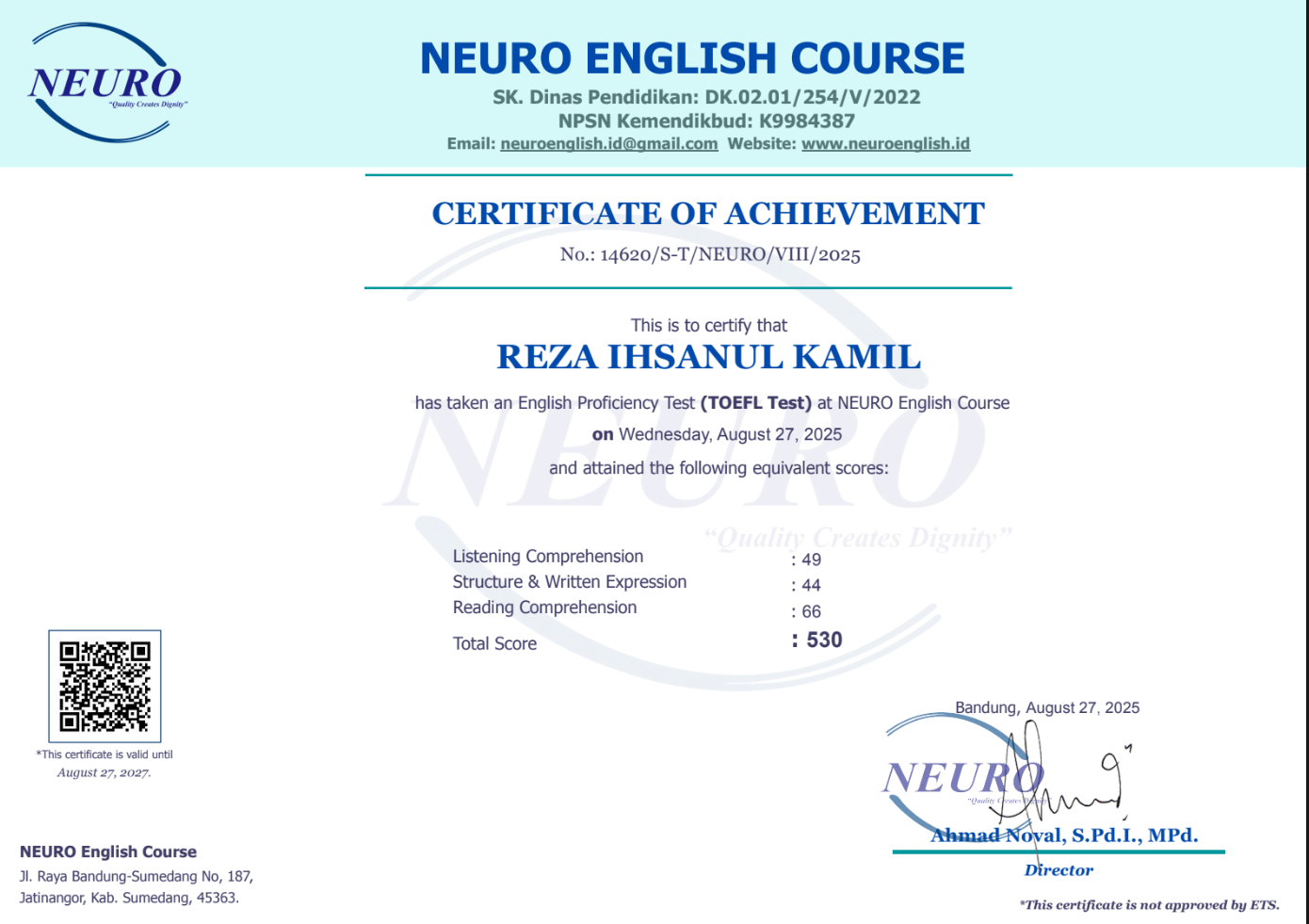Nama Terdaftar : LKP NEURO English Course