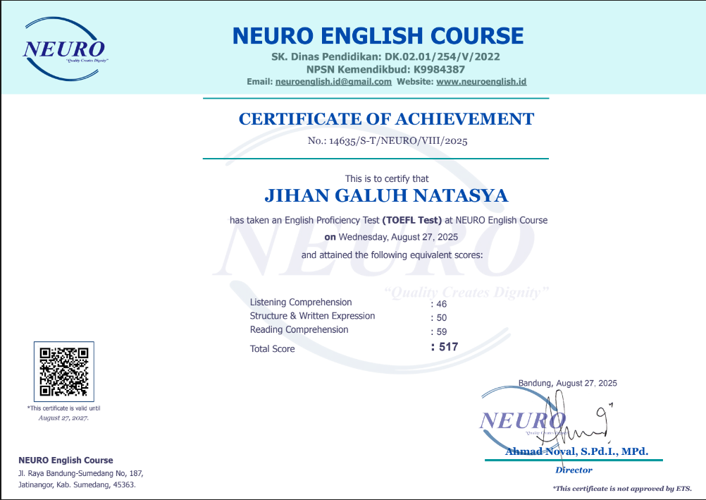 Nama Terdaftar : LKP NEURO English Course