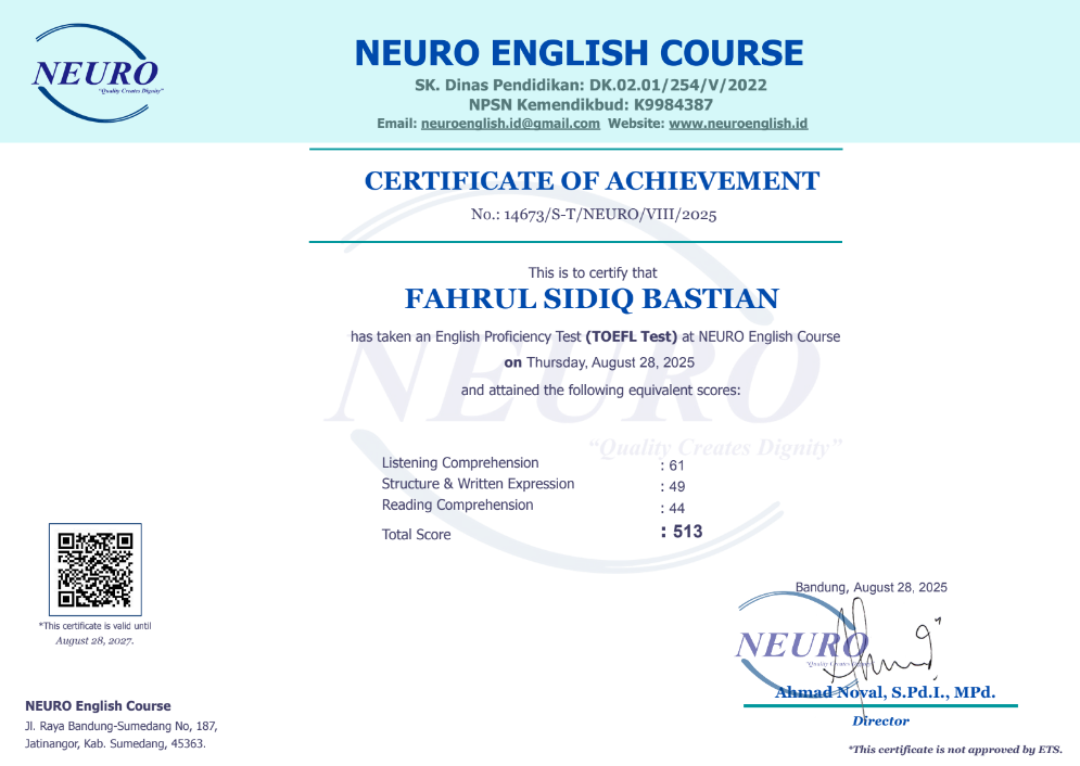 Nama Terdaftar : LKP NEURO English Course