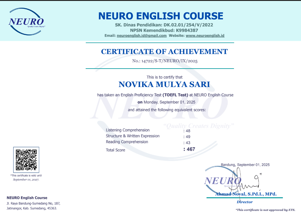 Nama Terdaftar : LKP NEURO English Course