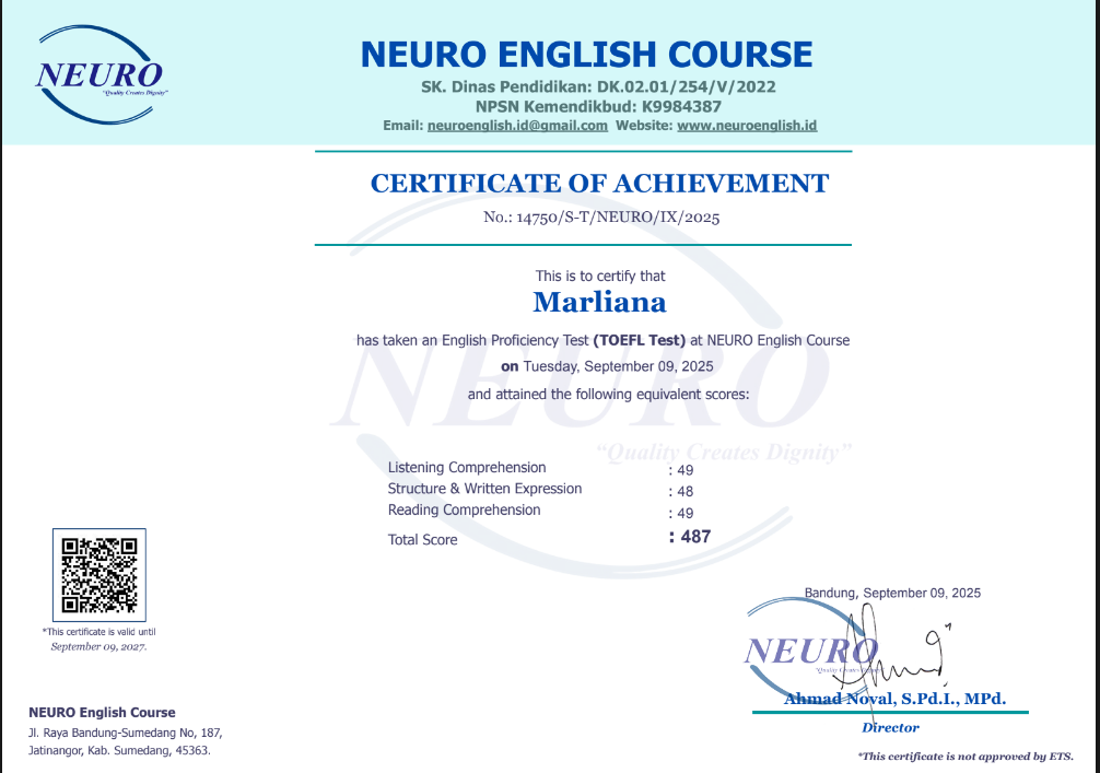 Nama Terdaftar : LKP NEURO English Course