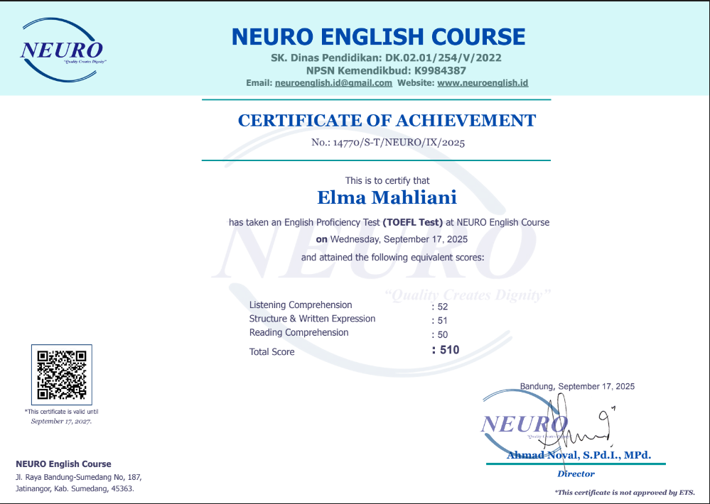 Nama Terdaftar : LKP NEURO English Course