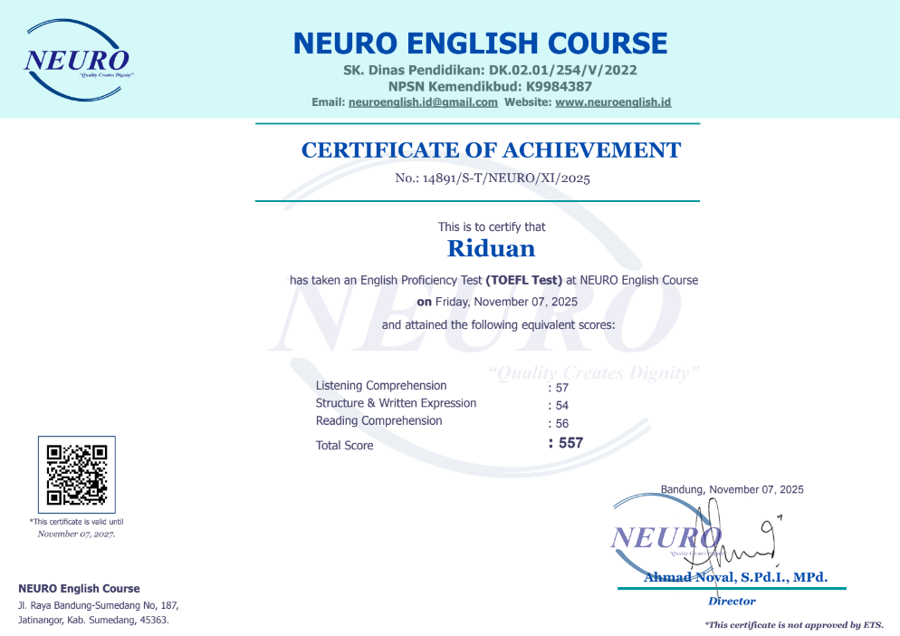 Nama Terdaftar : LKP NEURO English Course