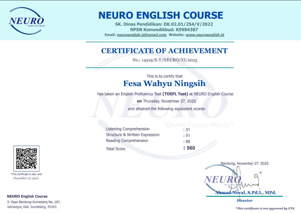 Nama Terdaftar : LKP NEURO English Course