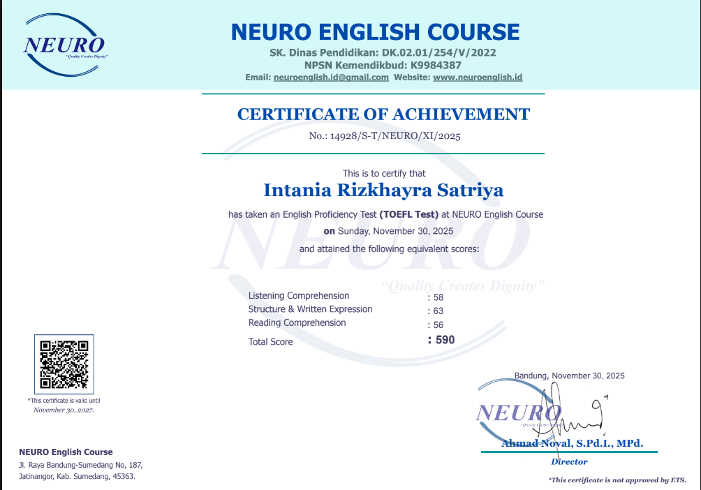 Nama Terdaftar : LKP NEURO English Course