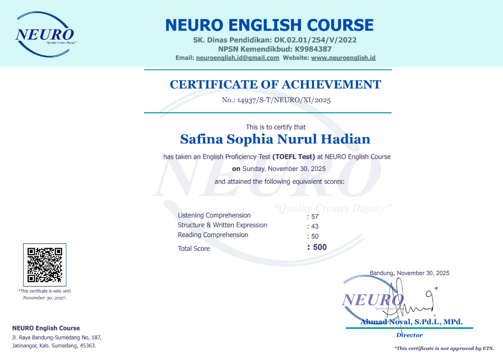Nama Terdaftar : LKP NEURO English Course