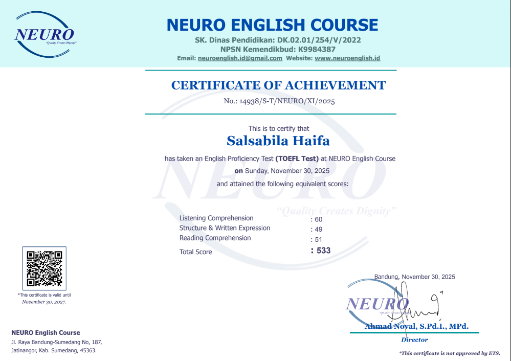 Nama Terdaftar               : LKP NEURO English Course