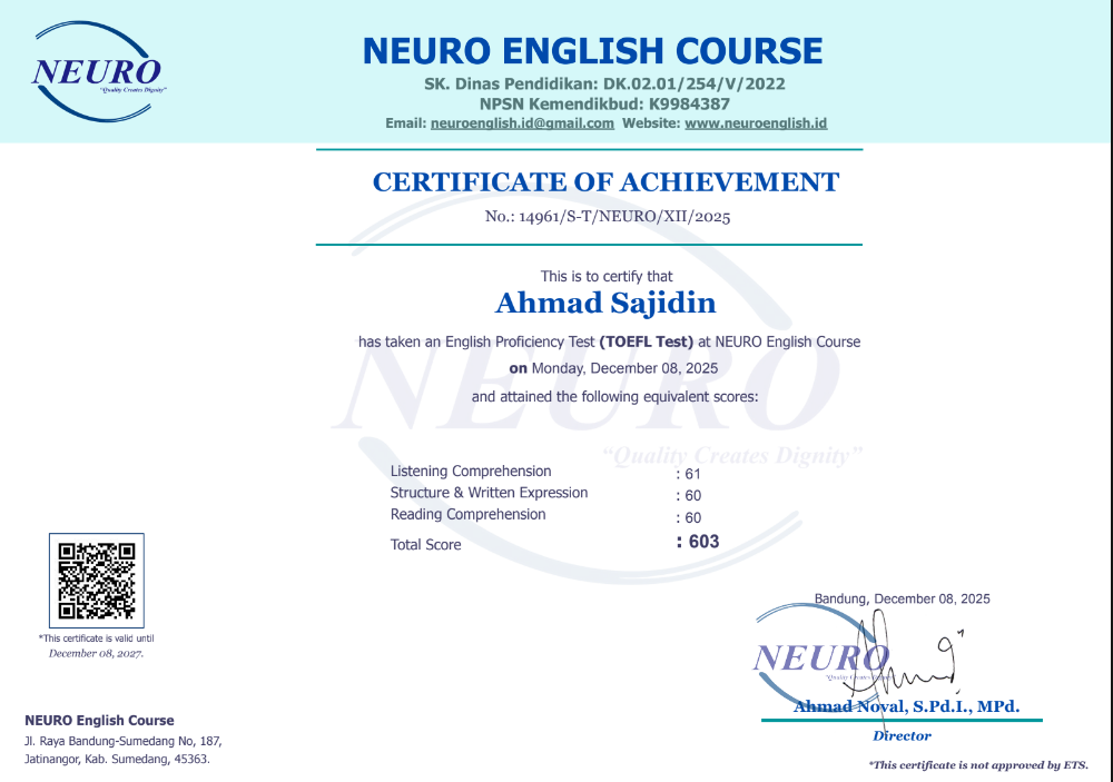 Nama Terdaftar : LKP NEURO English Course