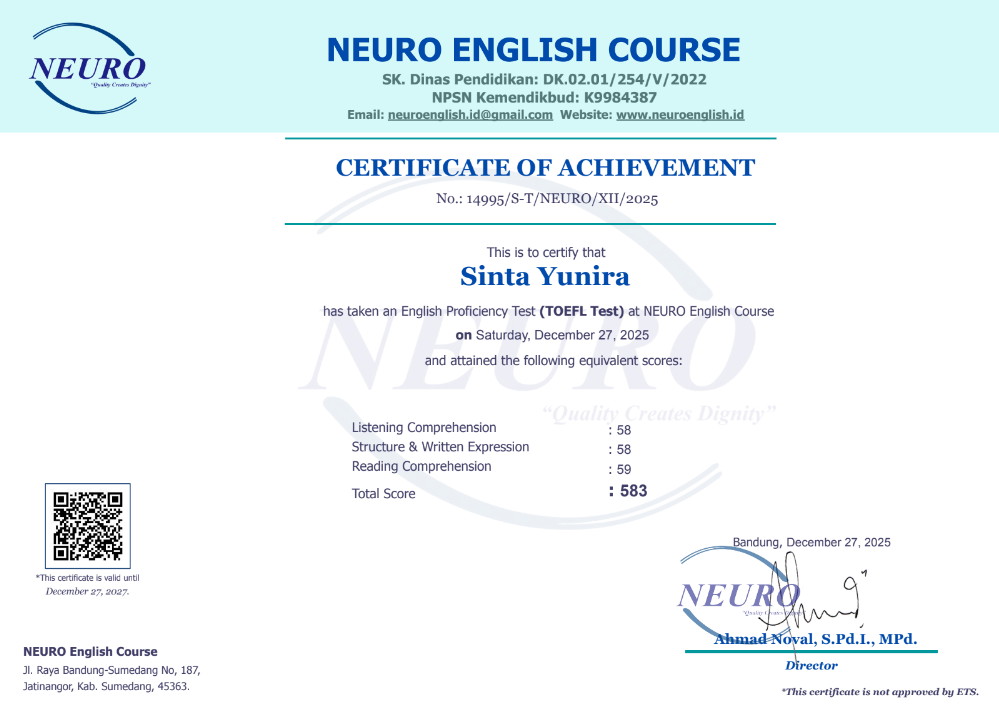 Nama Terdaftar               : LKP NEURO English Course