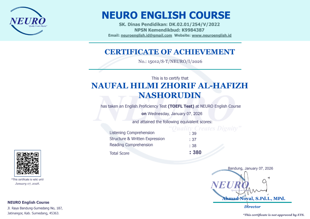 Nama Terdaftar               : LKP NEURO English Course