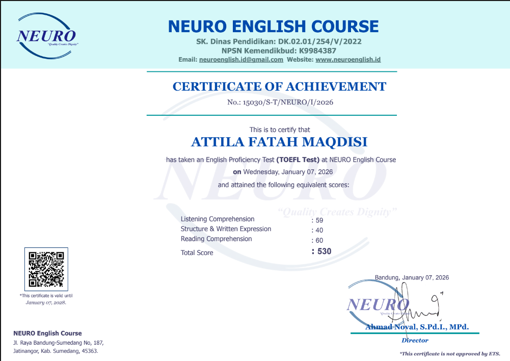 - Certificate Description: English Proficiency Test (TOEFL Test)