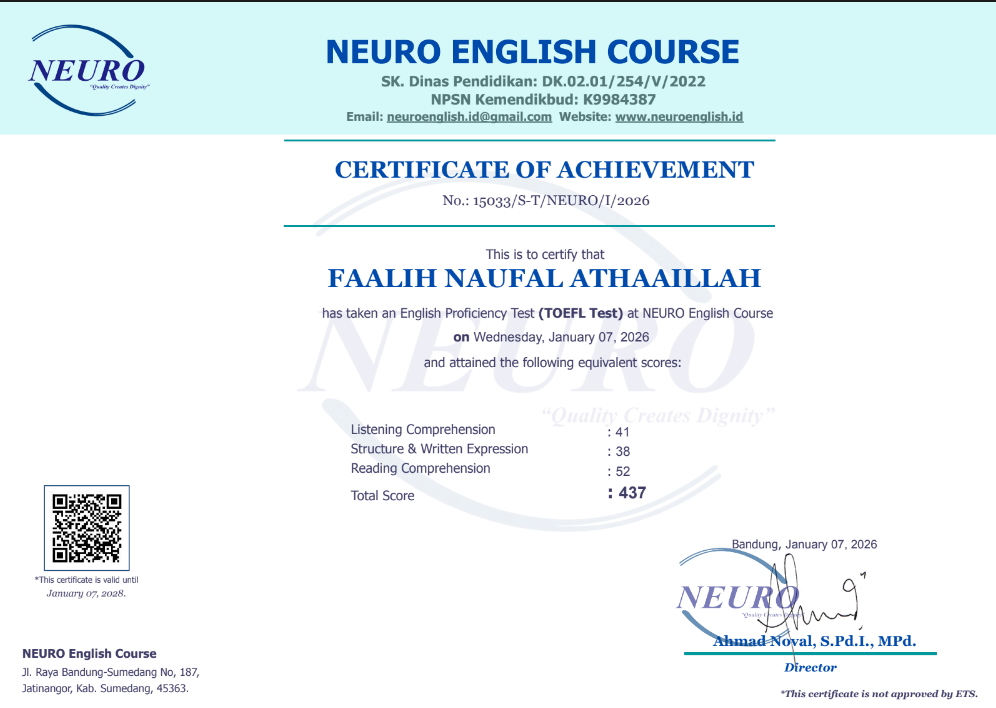Nama Terdaftar : LKP NEURO English Course