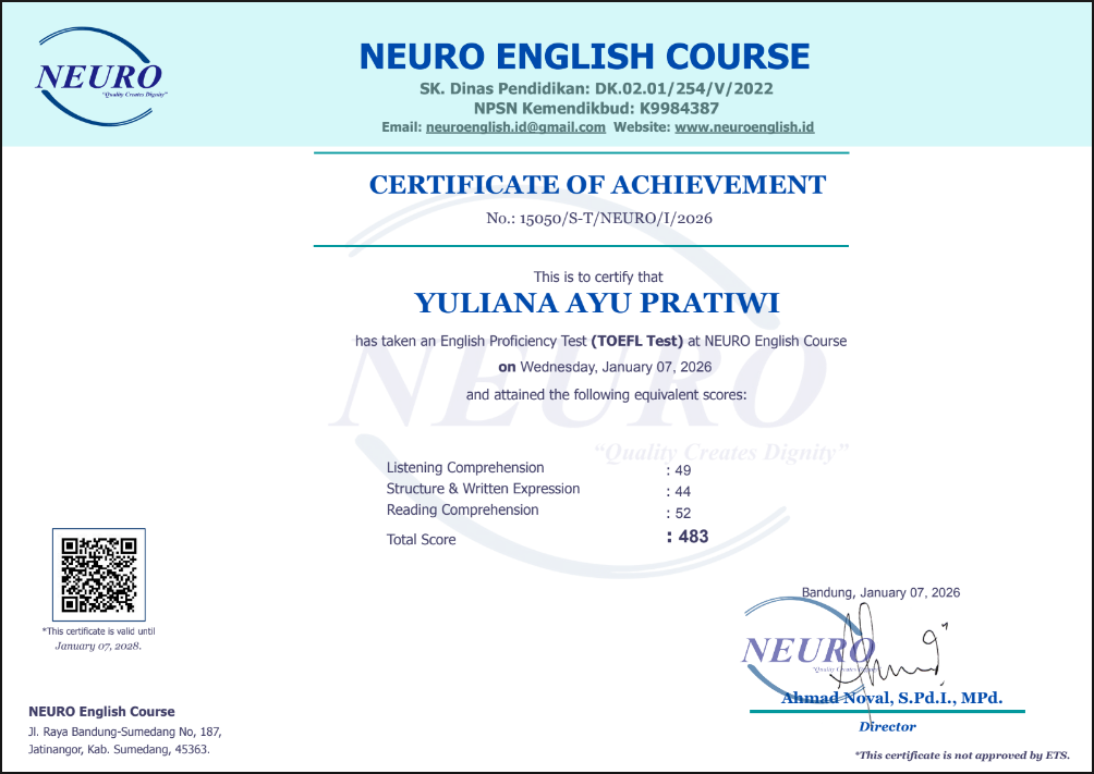 Nama Terdaftar               : LKP NEURO English Course