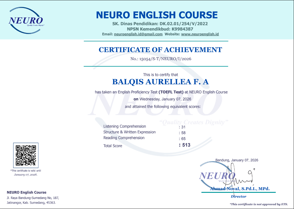 Nama Terdaftar : LKP NEURO English Course