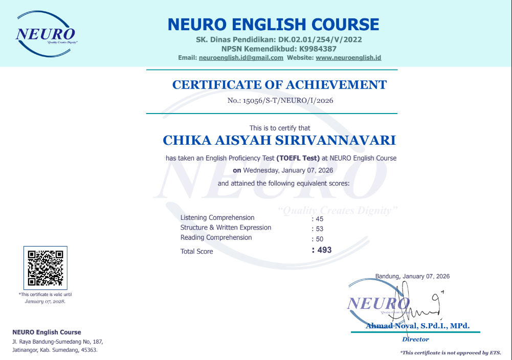 Nama Terdaftar : LKP NEURO English Course