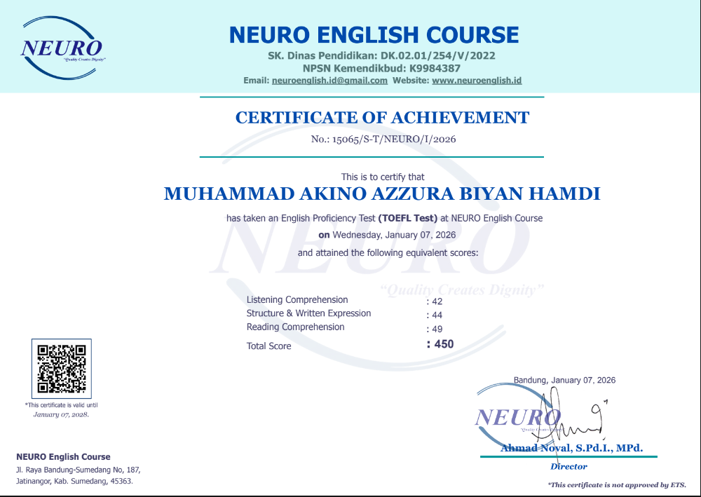 Nama Terdaftar : LKP NEURO English Course