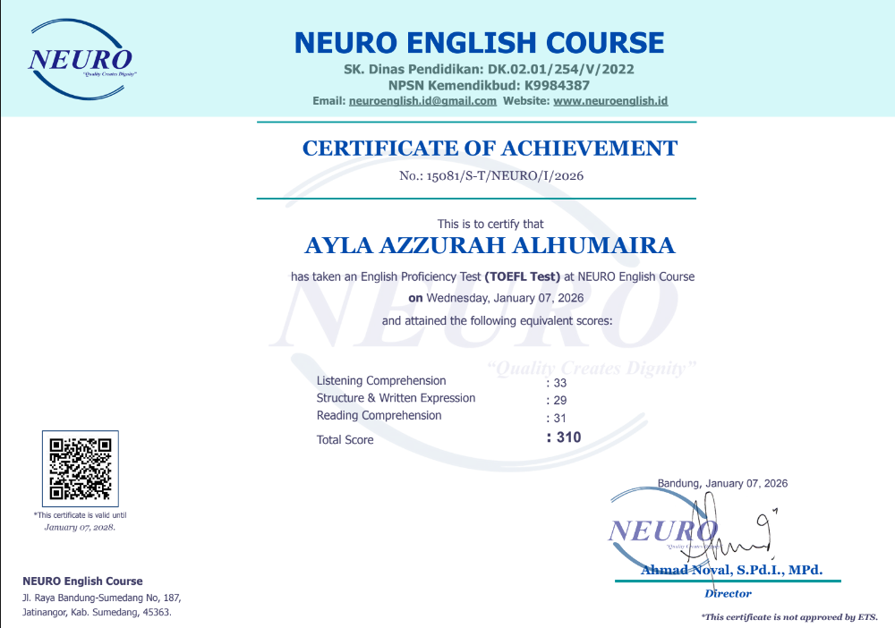 Nama Terdaftar               : LKP NEURO English Course