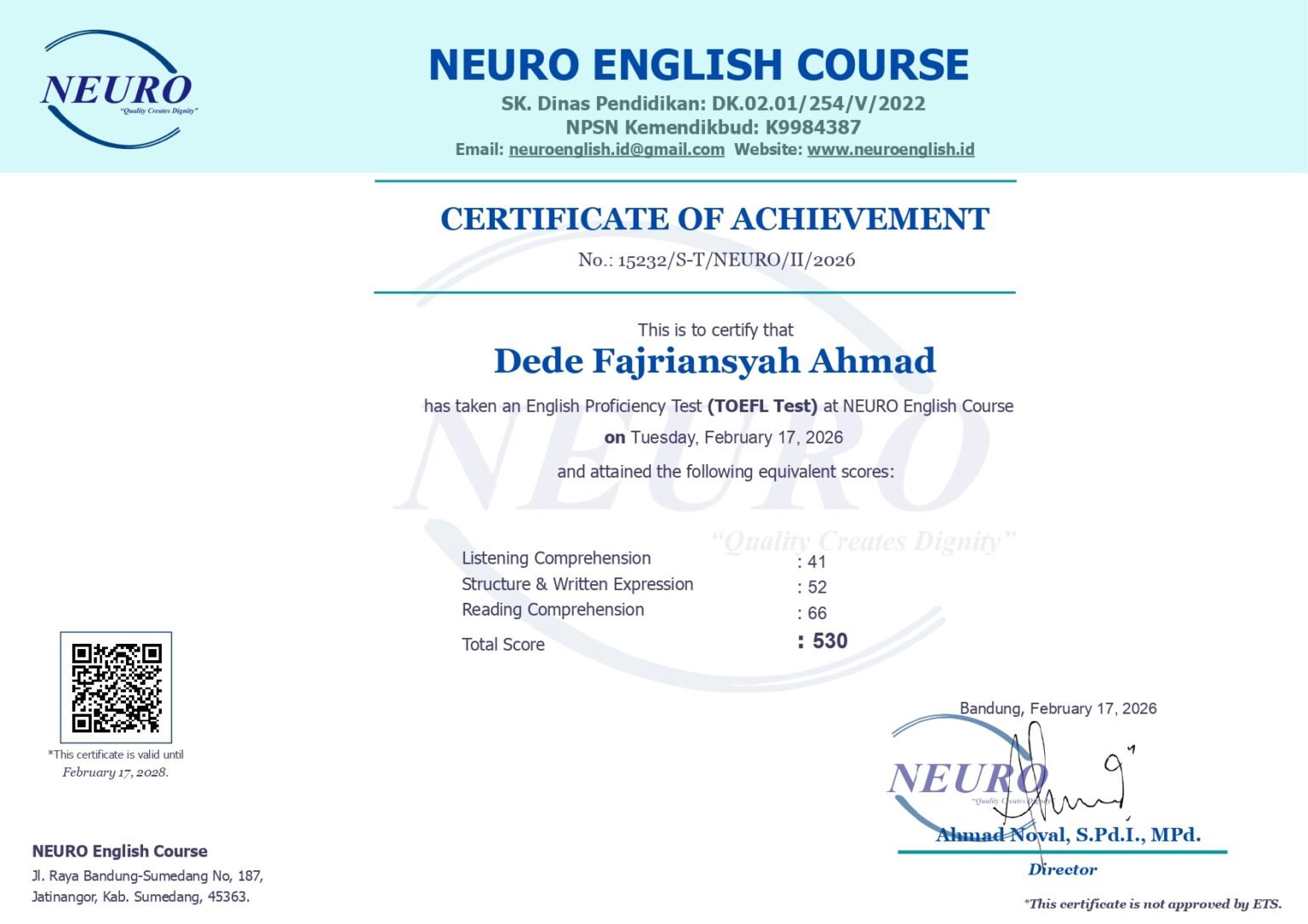 - Certificate Description: English Proficiency Test (TOEFL Test)