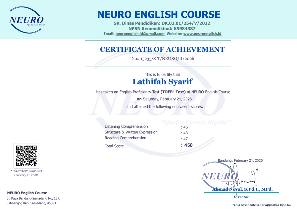 Nama Terdaftar : LKP NEURO English Course