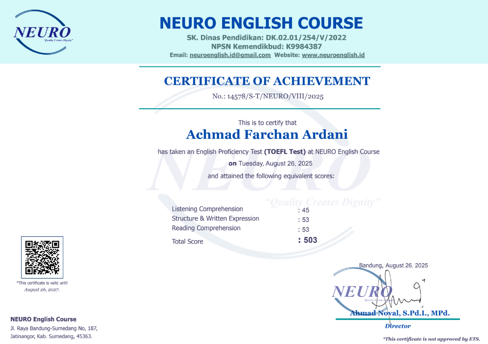 Nama Terdaftar : LKP NEURO English Course