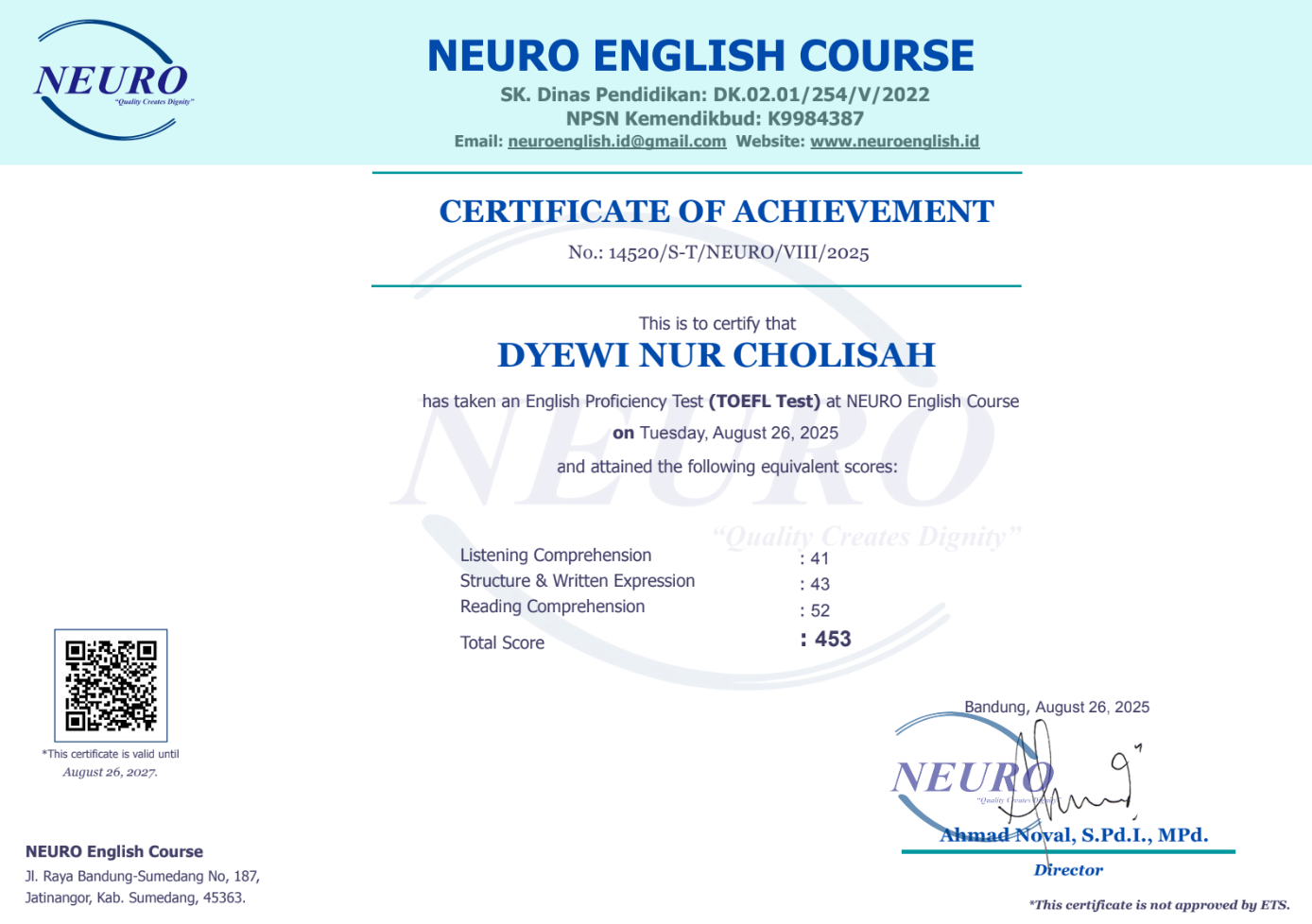 Nama Terdaftar : LKP NEURO English Course