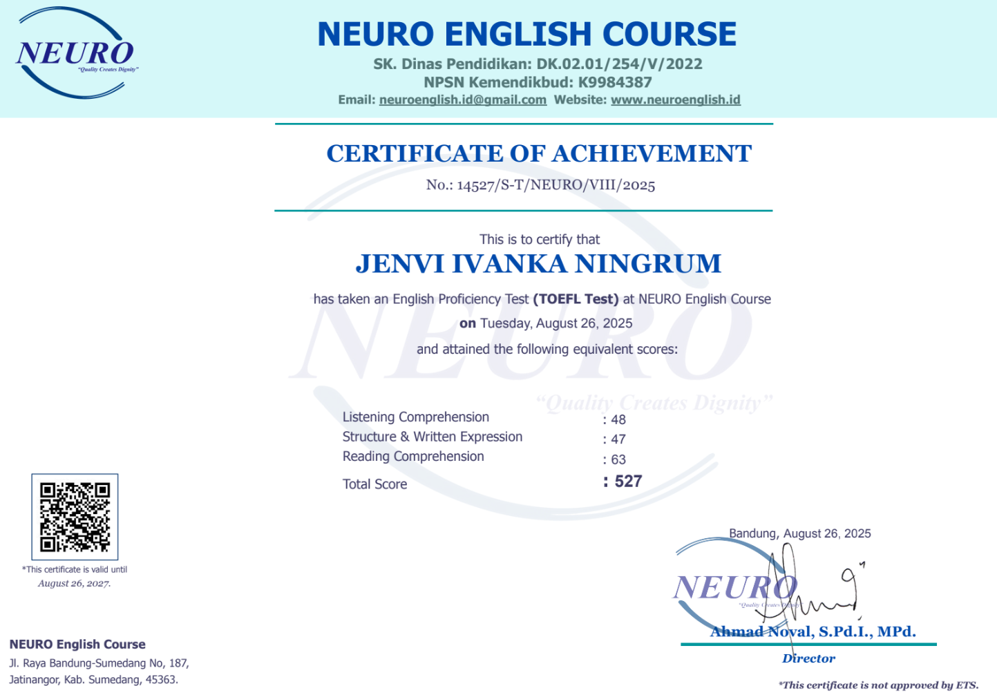 Nama Terdaftar : LKP NEURO English Course