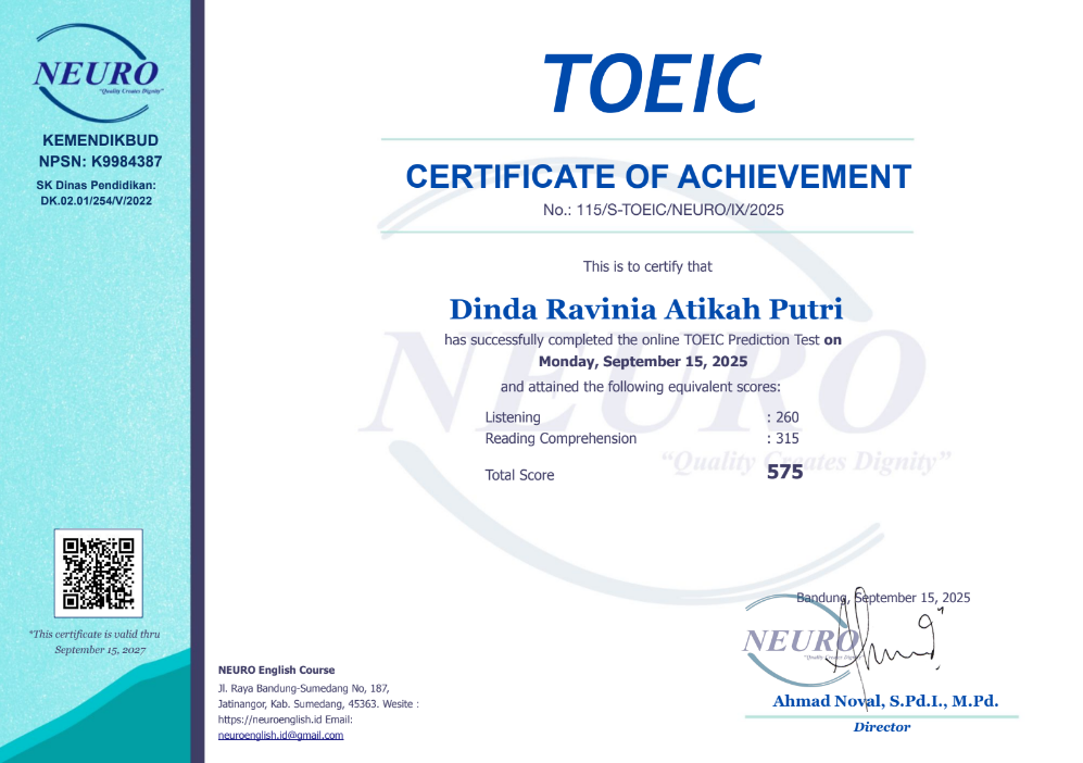 - Certificate Number: 115/S-TOEIC/NEURO/IX/2025
