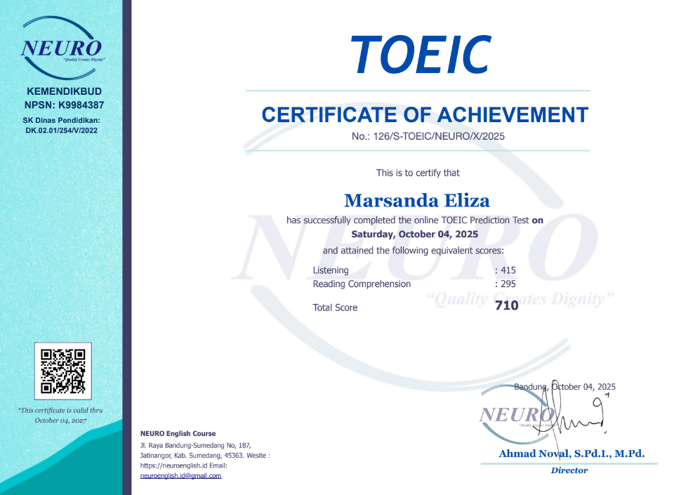 - Certificate Number: 126/S-TOEIC/NEURO/X/2025